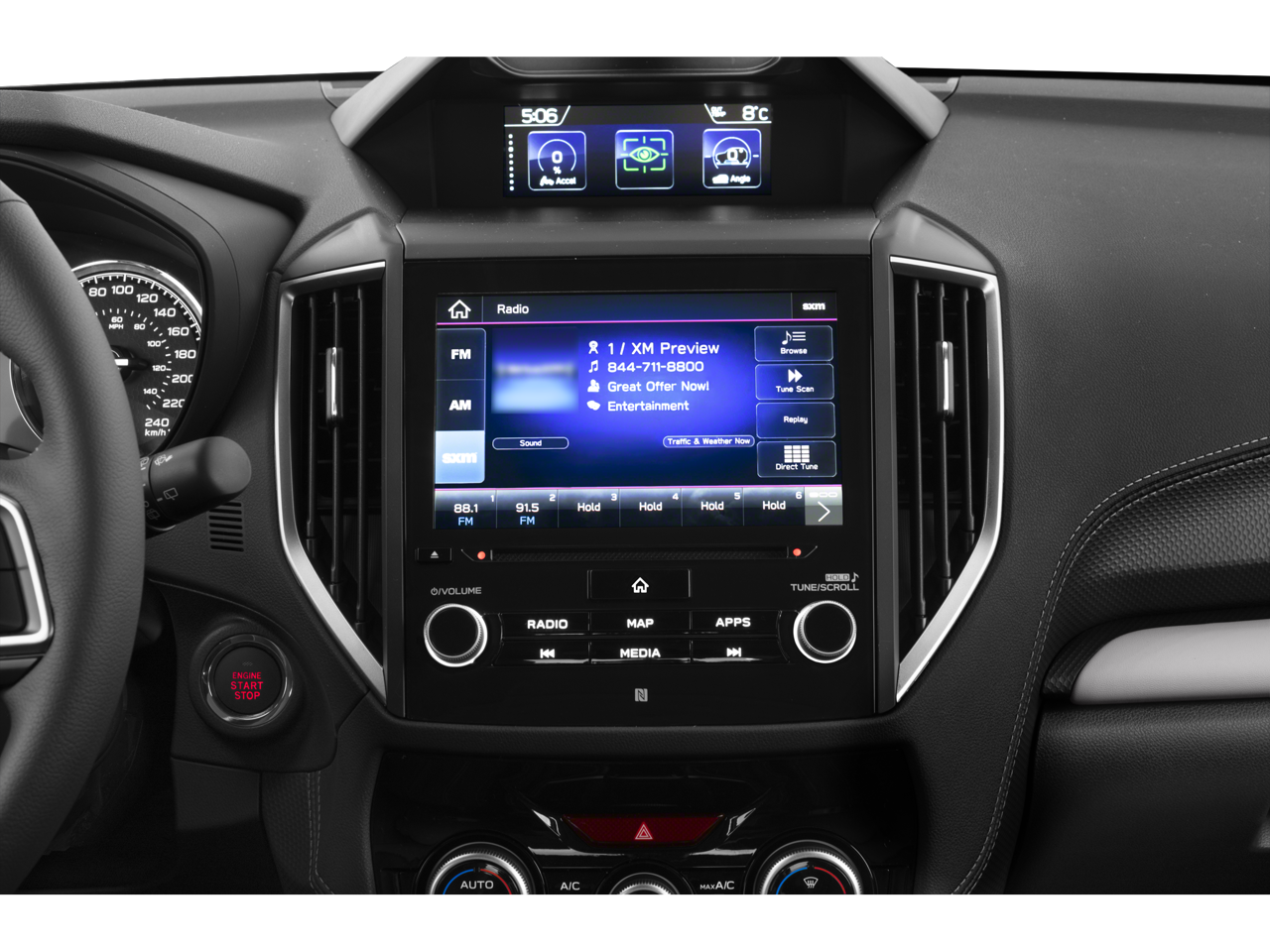 - Radio: Subaru STARLINK 8.0" Multimedia Plus System -inc: AM/FM stereo HD Radio, multi-touch gesture high resolution display screen, voice activated controls, Bluetooth® audio streaming, hands-free phone connectivity and hands-free SMS text messaging connectivity (refer to subaru.com for cell phone compatibility), Near Field Communication (NFC), iPod control capability, SiriusXM All Access radio and SiriusXM Travel Link (4 months free trial/subscription required after), smartphone integration for AHA, Android Auto, Apple CarPlay, Pandora and STARLINK cloud applications (refer to subaru.com for app availability), USB and Over The Air (OTA) audio system update, steering wheel controls for audio and Bluetooth®, 6 speakers, 3.5mm auxiliary input jack and dual USB A input/charge ports